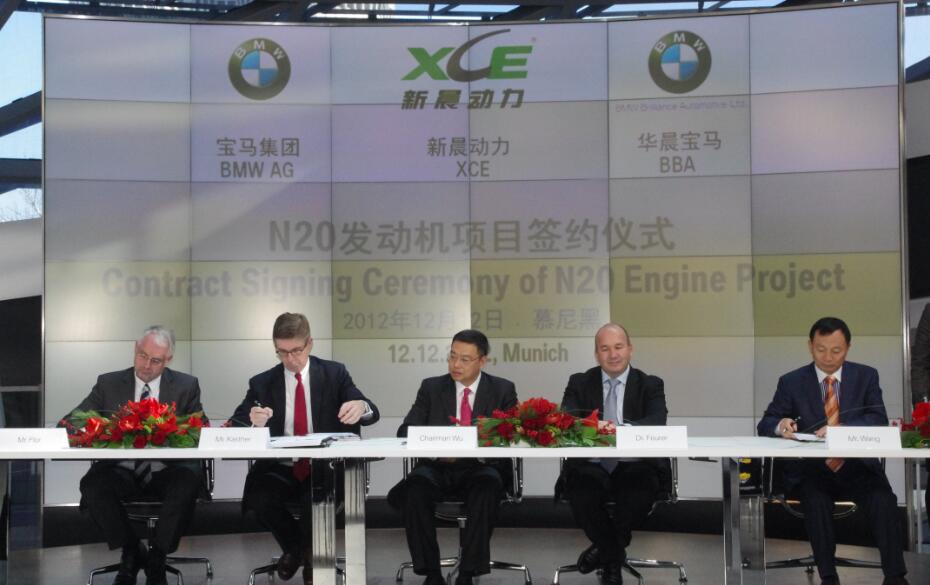 ????? 簽約儀式由寶馬集團(tuán)中國規(guī)劃部高級副總裁伍騰(Guenter Wollny)主持,時(shí)任寶馬集團(tuán)規(guī)劃部高級副總裁費(fèi)伊勒(Rainer Feurer)出席簽字儀式并代表寶馬集團(tuán)簽署合作協(xié)議和講話。華晨寶馬董事長吳小安、時(shí)任首席執(zhí)行官兼總裁康思遠(yuǎn)(Olaf Kastner)、時(shí)任副總裁方諾德(Knudt Flor)出席簽字儀式并代表華晨寶馬簽字。時(shí)任寶馬集團(tuán)發(fā)動(dòng)機(jī)事業(yè)部高級副總裁海斯(Anton Heiss)代表寶馬發(fā)動(dòng)機(jī)事業(yè)部簽字。